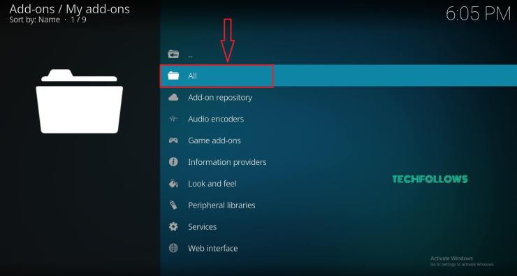 #3 : En la página My Addons, seleccione All option.