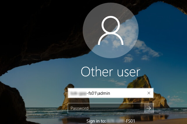 Como puede ver, el mensaje contiene el nombre de su ordenador/servidor (NY-FS01 en nuestro caso). Si quieres acceder con una cuenta local, por ejemplo, Administrador, escribe NY-FS01Administrador en el campo Nombre de usuario y escribe la contraseña. Por supuesto, si el nombre de tu ordenador es bastante largo, su introducción puede ser un verdadero reto!