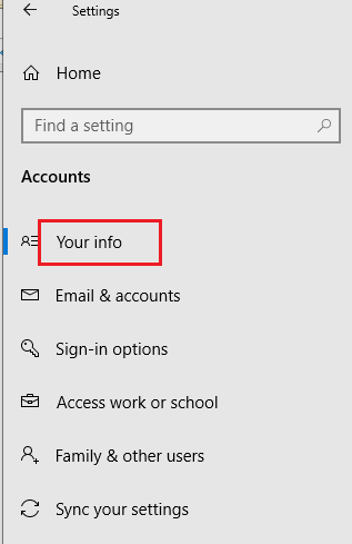 Abra el menú Configuración> Cuentas> Su información;