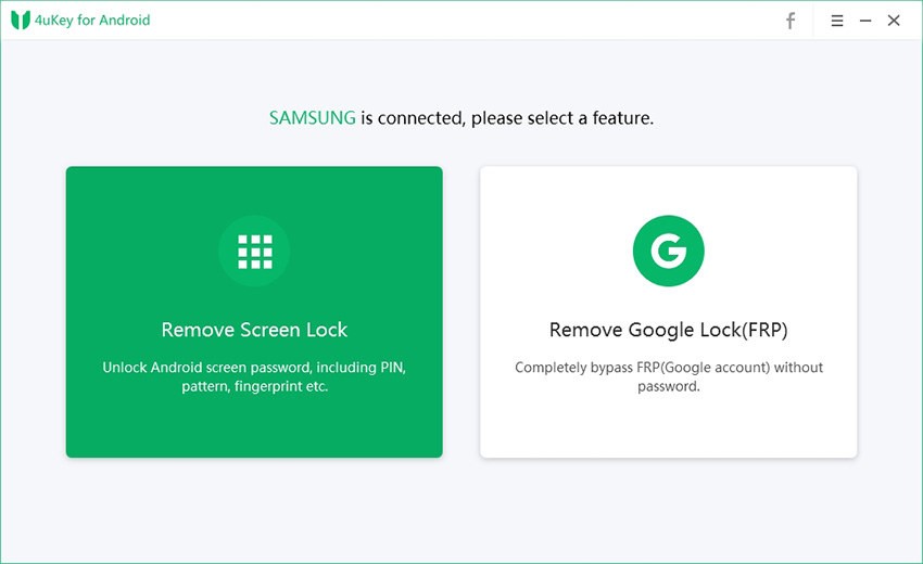 Simplemente, instale e inicie la versión registrada y comience a seguir la guía en pantalla para eliminar el bloqueo de pantalla o el bloqueo de FRP.
